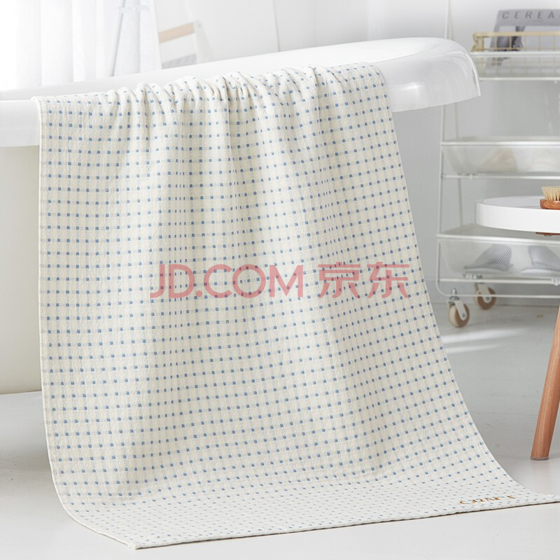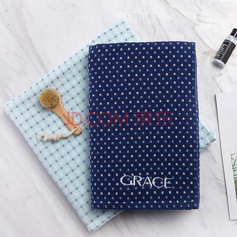 商品相册:洁丽雅(grace)纱布浴巾 吸水家用不掉毛大毛巾 成人儿童柔软浴巾8549单条装( 深蓝色 /浅蓝色 /米色)第
