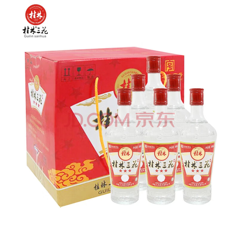 商品相册:桂林三花酒 三星 米香型白酒 52度 480ml*6瓶 整箱装 送礼第