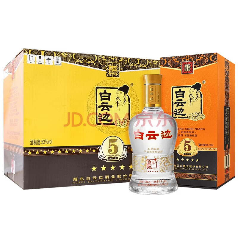 商品相册:白云边五星陈酿 浓酱兼香型白酒 53度 500ml*6瓶 整箱装【热卖白酒】第