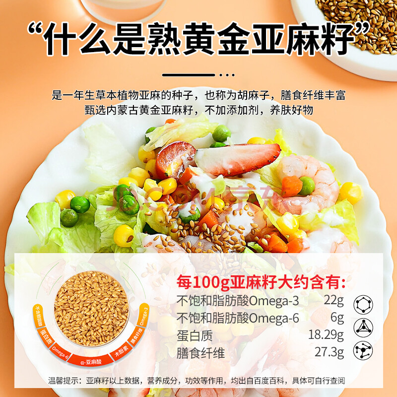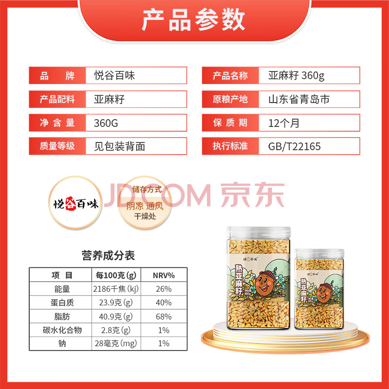 商品相册:悦谷百味 黄金熟亚麻籽360g (可磨亚麻籽粉 五谷杂粮 烘焙 可榨油)第