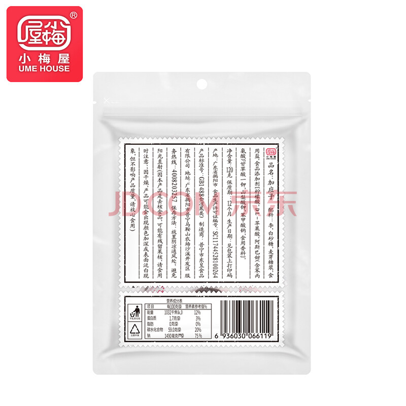 商品相册:小梅屋 无核加应子 李子干蜜饯果脯酸梅干果办公室休闲零食 120g第