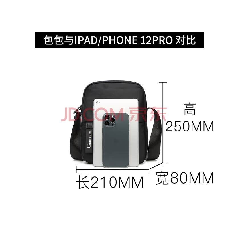 商品相册:鳄鱼恤时尚休闲包包男士潮流轻便布包单肩斜挎百搭小包B1935黑送男友第