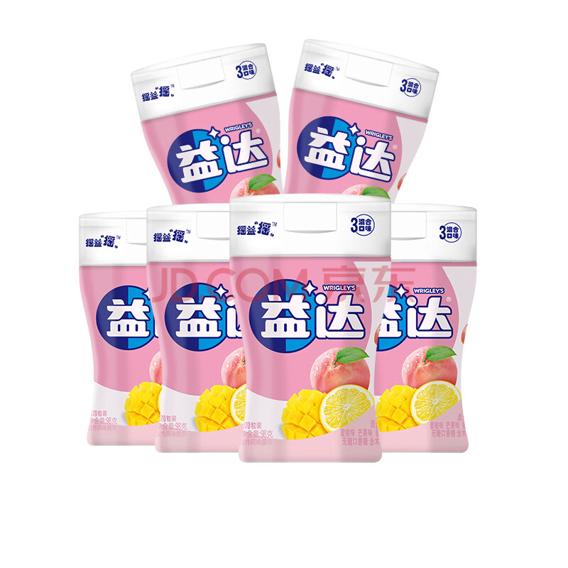 商品相册:益达 无糖口香糖混合味约70粒98g*6(粉瓶) 休闲零食糖果 清新口气糖第