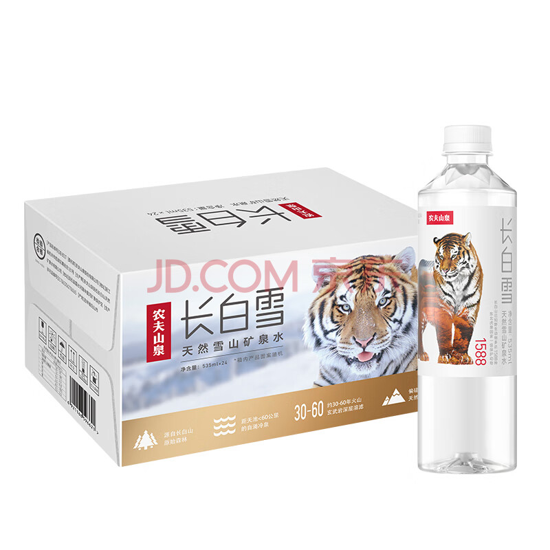 商品相册:农夫山泉长白山天然矿泉水饮用水长白雪 535ml*24瓶 整箱装第