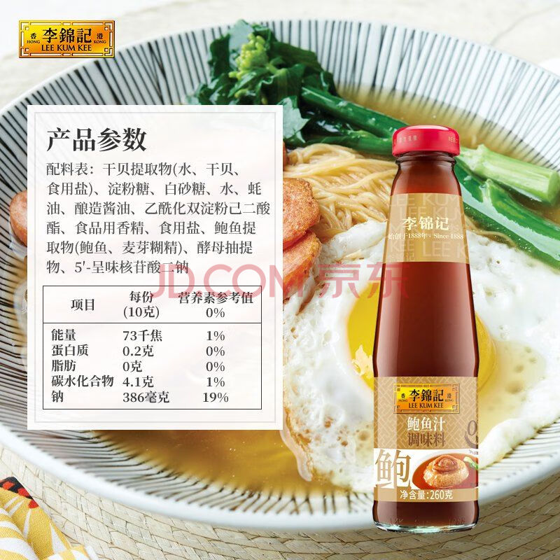 商品相册:李锦记鲍鱼汁260g 0添加防腐剂 萃取自鲍鱼干贝 蘸拌捞蒸调味料第