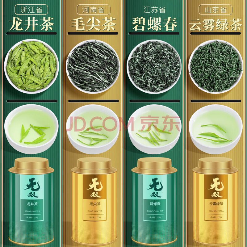 商品相册:音朗 茶叶 四大绿茶 新茶明前龙井碧螺春毛尖云雾茶叶礼盒送领导500g第