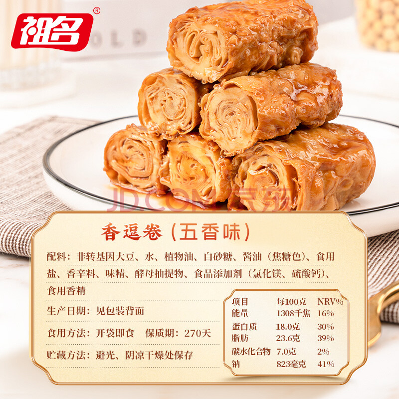 商品相册:祖名 香逗卷五香味500g 休闲零食解馋小吃豆卷卤味豆干即食小包装宵夜第