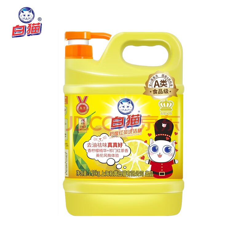商品相册:白猫 柠檬红茶洗洁精1.29kg A类食品用去油祛味红茶香 洗洁精第