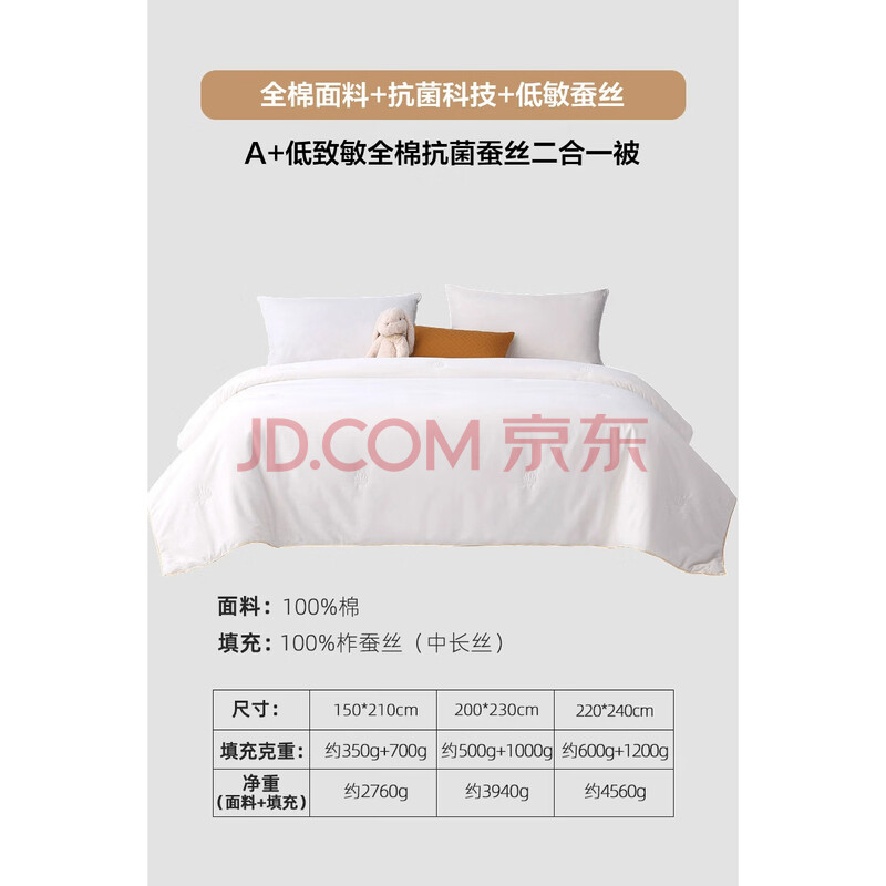 商品相册:水星儿童被子蚕丝被100%蚕丝子母被冬被空调被冬季被芯约7.8斤200*230cm白第