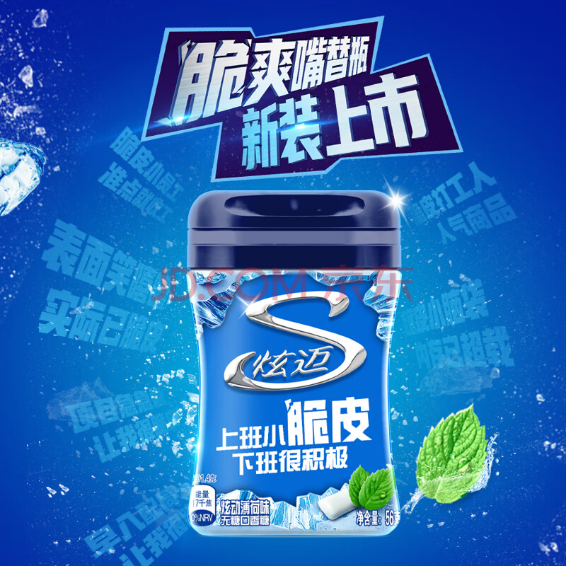 商品相册:炫迈 脆皮无糖口香糖 薄荷味 40粒56g1瓶 糖果零食 清新口气 提神便携第