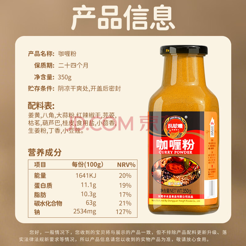 商品相册:凤球唛咖喱粉350g 无添加 黄咖喱酱姜黄牛肉鸡块腌料咖喱饭配料汤料第