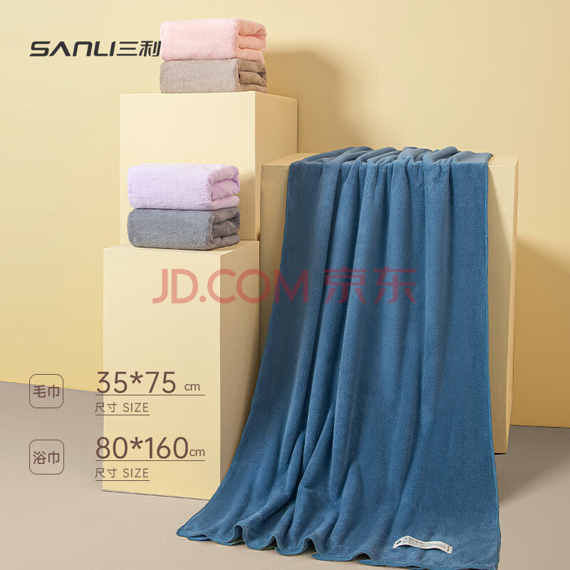 商品相册:三利加大毛巾浴巾2件套装A类男夏季速干吸水洗澡不易掉毛大成人女裹巾第