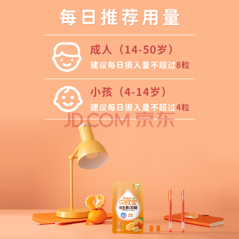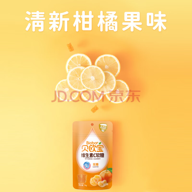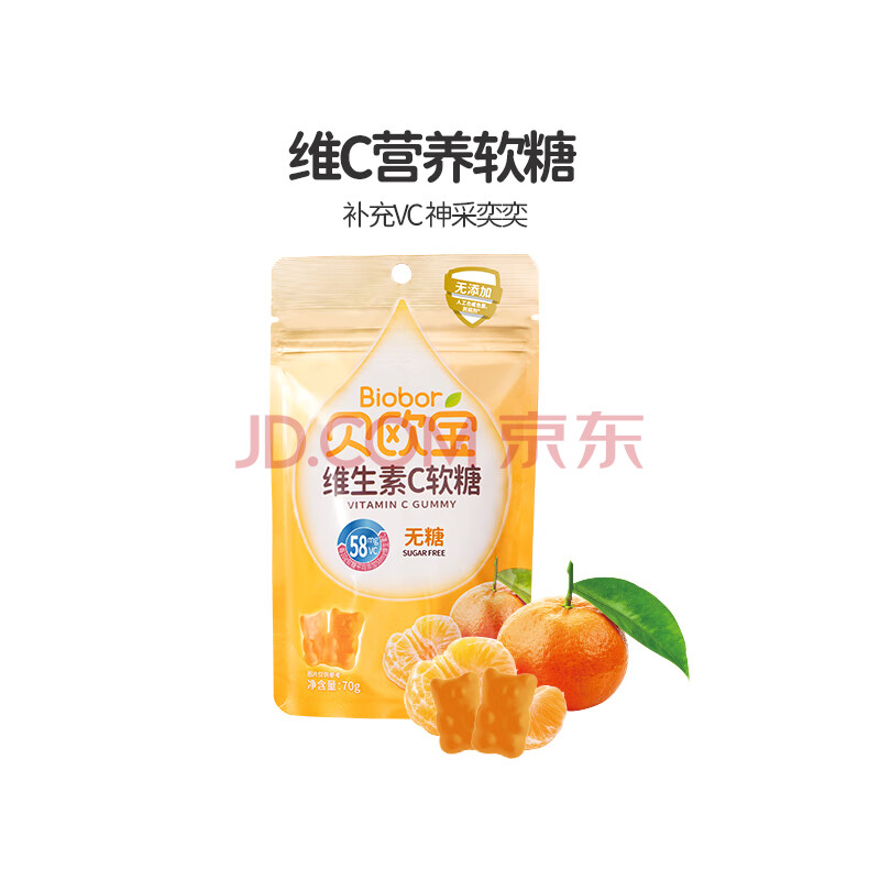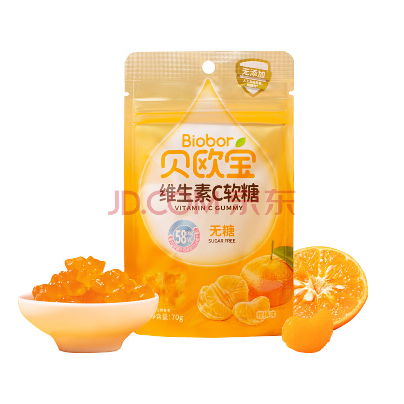 商品相册:贝欧宝 维生素C软糖 70g 柑橘味 无糖 儿童营养糖果 果汁糖果 礼物第