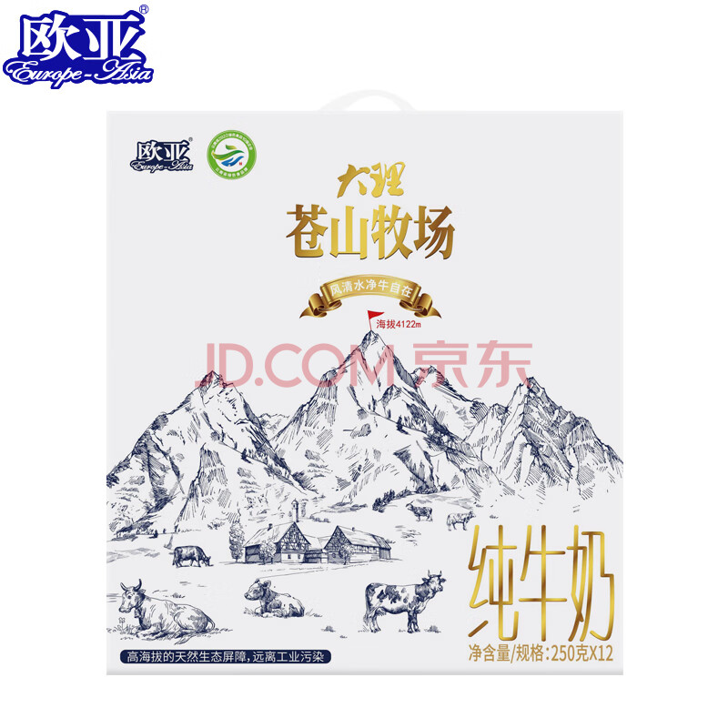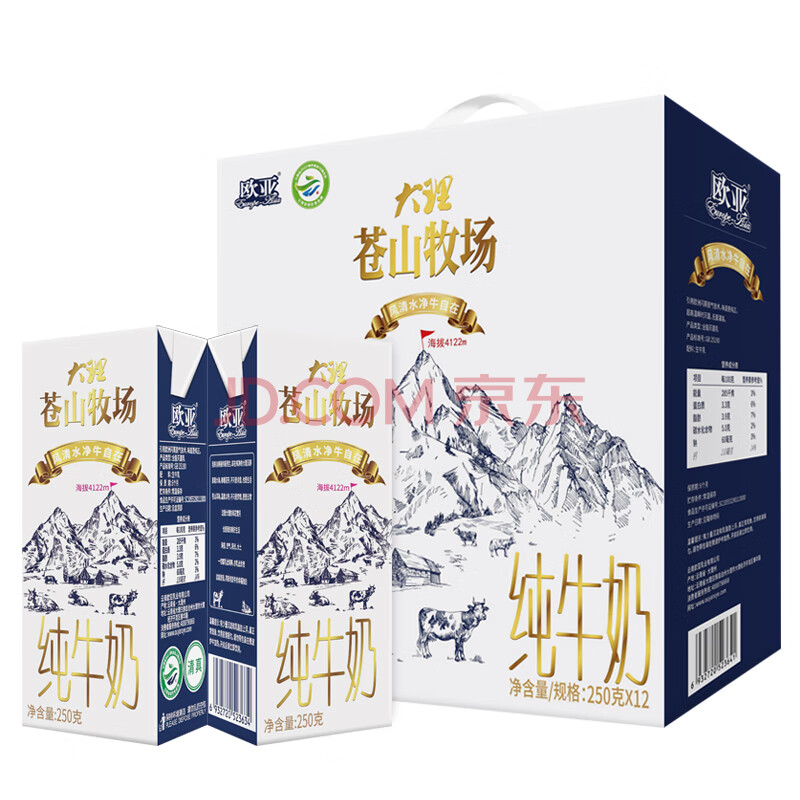 商品相册:欧亚 苍山牧场纯牛奶礼盒250g*12盒 蛋白质3.3%第