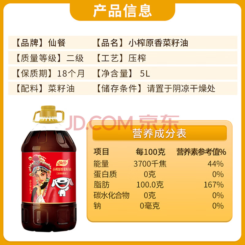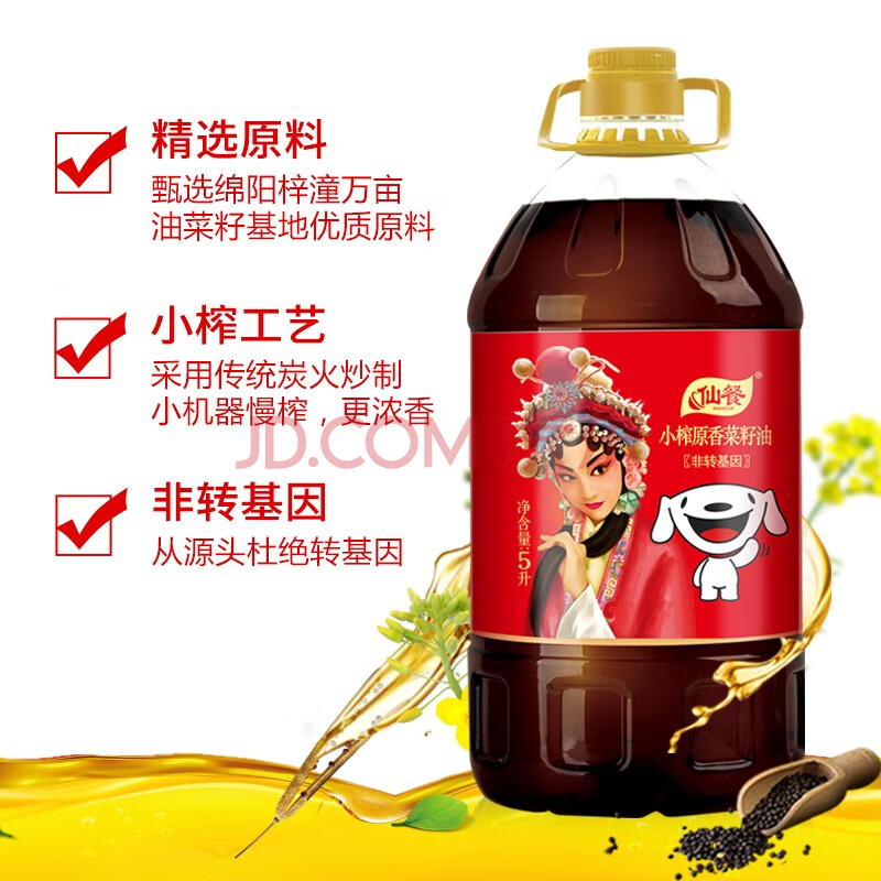 商品相册:仙餐牌食用油 小榨原香 四川压榨非转基因菜籽油 5L 四川风味第