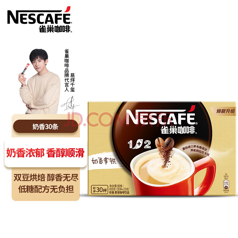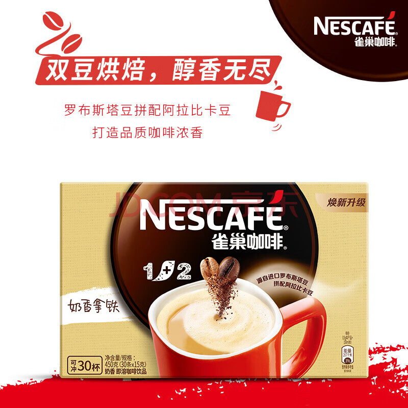 商品相册:雀巢1+2奶香速溶咖啡30条*15g/盒+川宁英式早餐茶25袋50g第