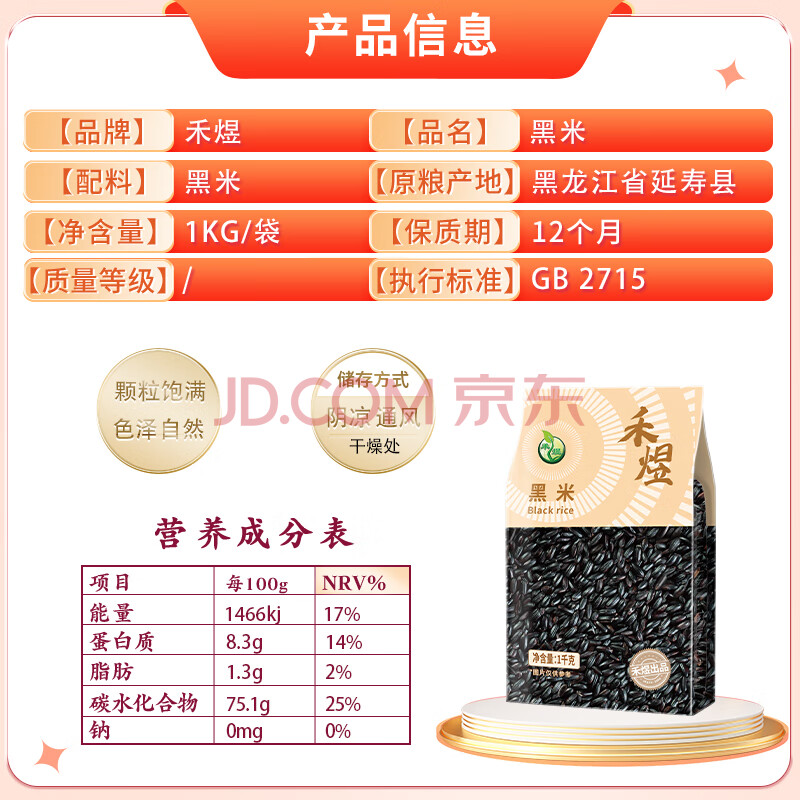 商品相册:禾煜黑米 2斤( 东北黑米 五谷杂粮 粗粮 粥米伴侣 真空装)第