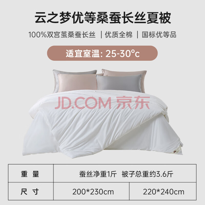 商品相册:慈云云之梦蚕丝被 100%桑蚕长丝A类优等品全棉被子3.6斤 2*2.3m第