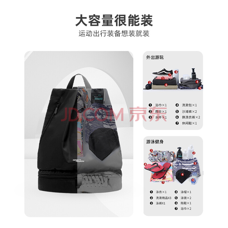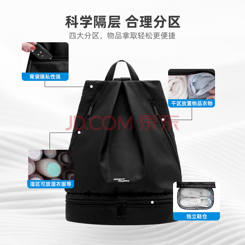 商品相册:乐活旅行游泳包干湿分离运动背包男篮球包健身包抽绳双肩包泳包足球训练包第
