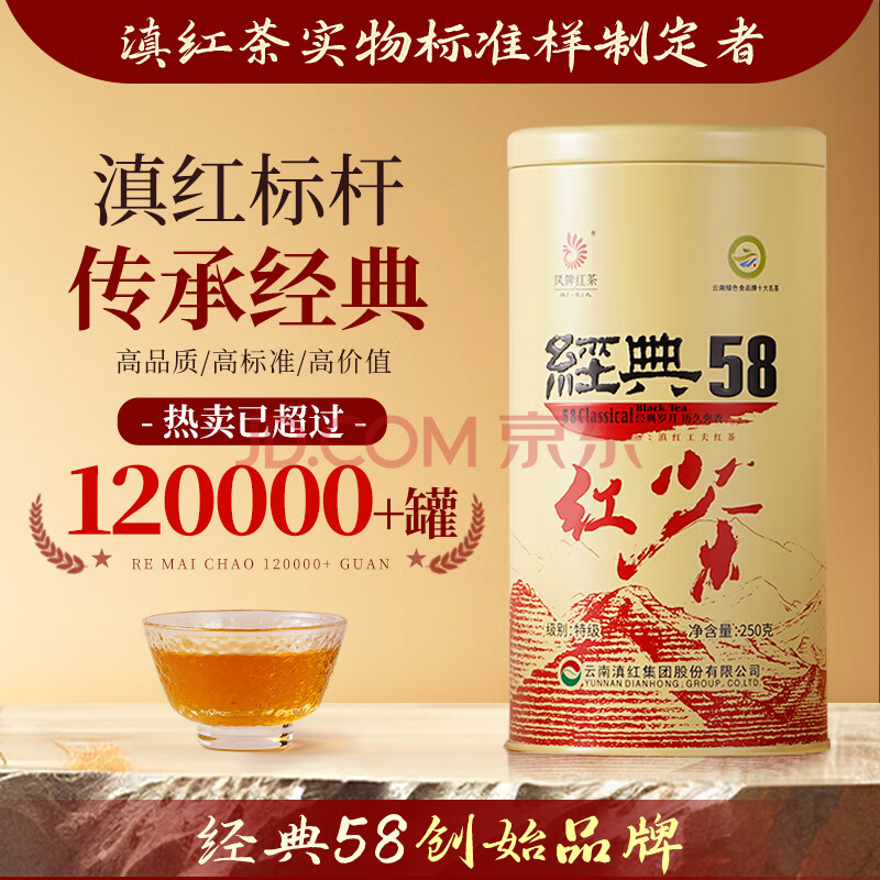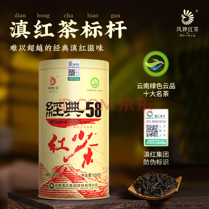 商品相册:凤牌 红茶 经典58凤庆滇红特级250g罐装 茶叶 中华老字号第
