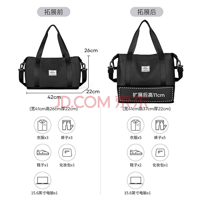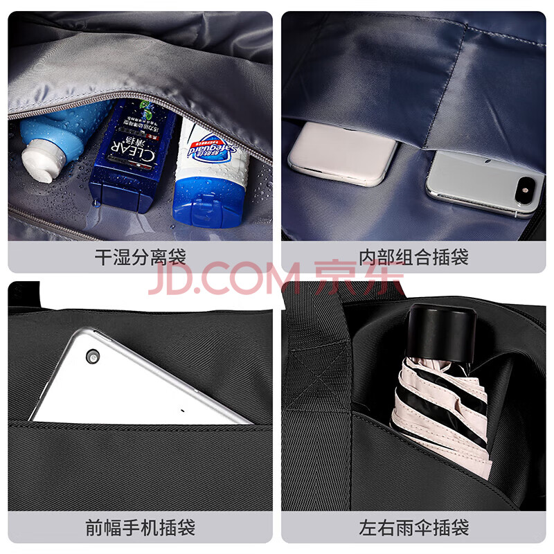 商品相册:Landcase手提旅行包女大容量行李包可扩容收纳包干湿分离健身包2104黑色第