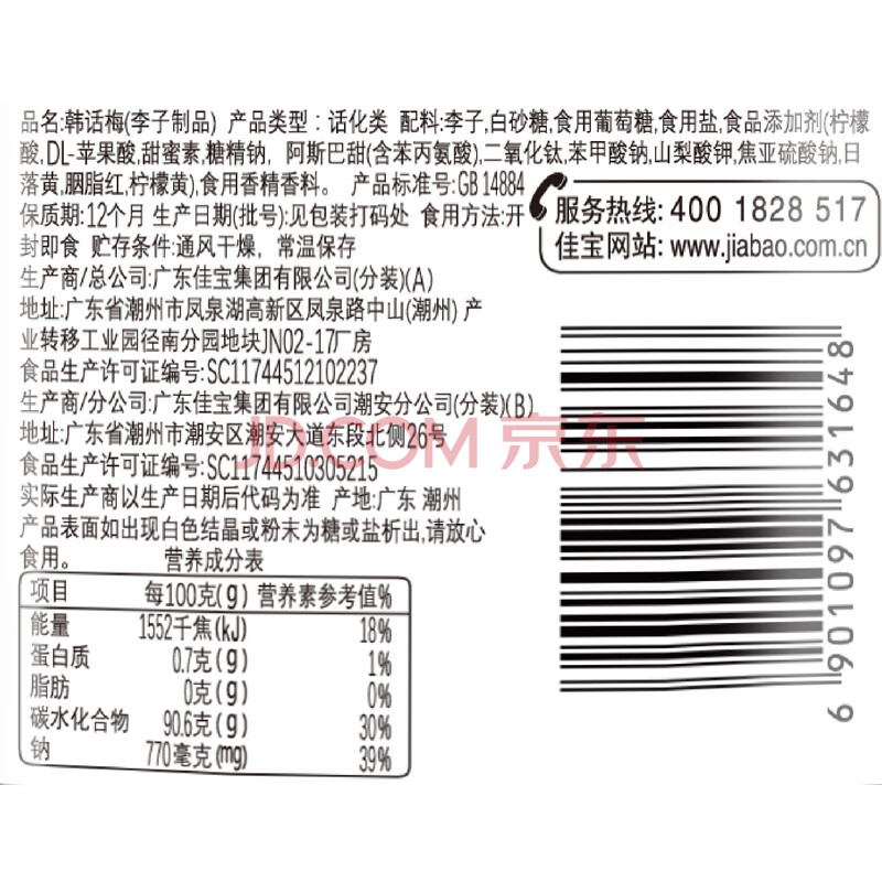 商品相册:佳宝 果脯蜜饯果干类 话梅李子零食情人梅清甜酸李 韩话梅210G第