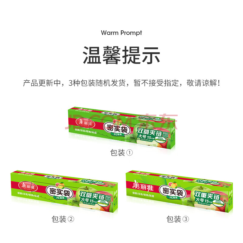商品相册:美丽雅密封袋大号 食品保鲜袋15只冰箱储物收纳冷冻分装一次性自封袋第