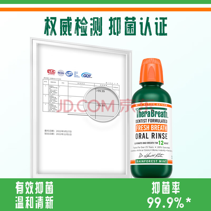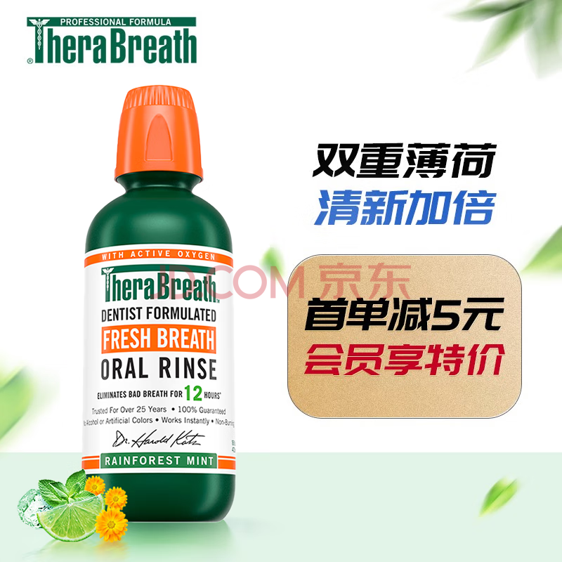 商品相册:TheraBreath凯斯博士漱口水 雨林薄荷473ml 0酒精 深层清洁抑菌持久 持久清新第