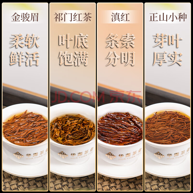 商品相册:华源红茶组合金骏眉正山小种 滇红祁门红茶特级自己喝送礼盒装600g第