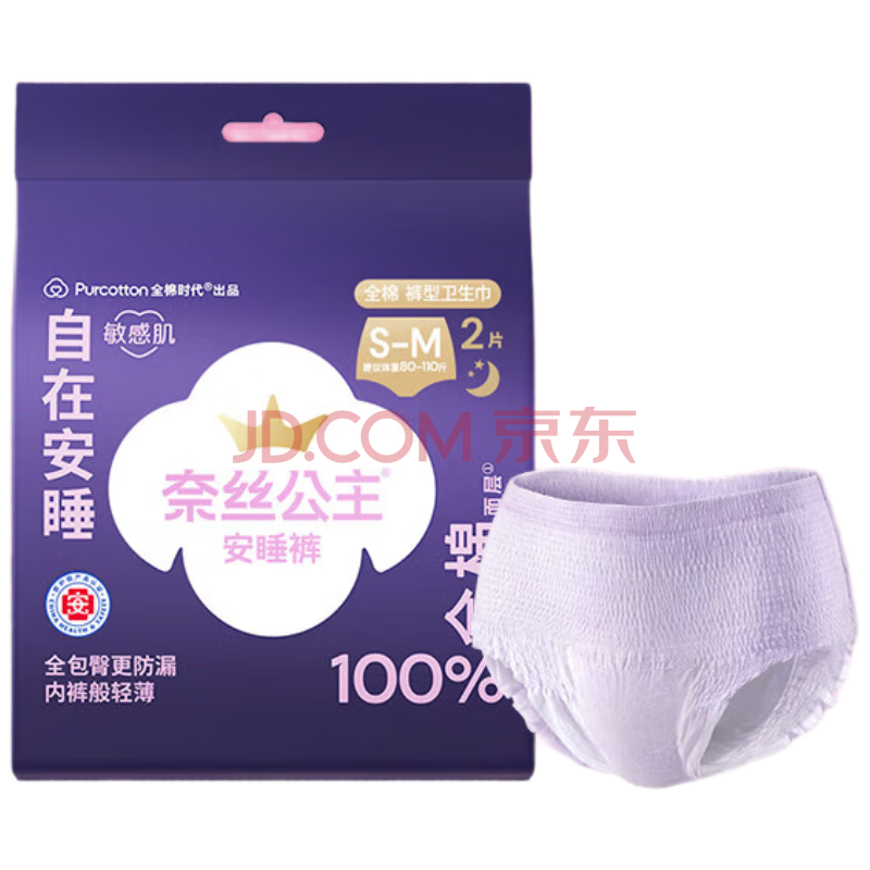 商品相册:全棉时代 安睡裤安心裤卫生巾夜用裤型姨妈巾纯棉防侧漏经期裤S-M码10片第