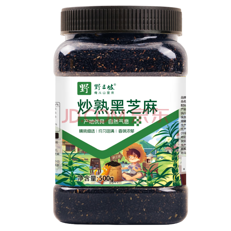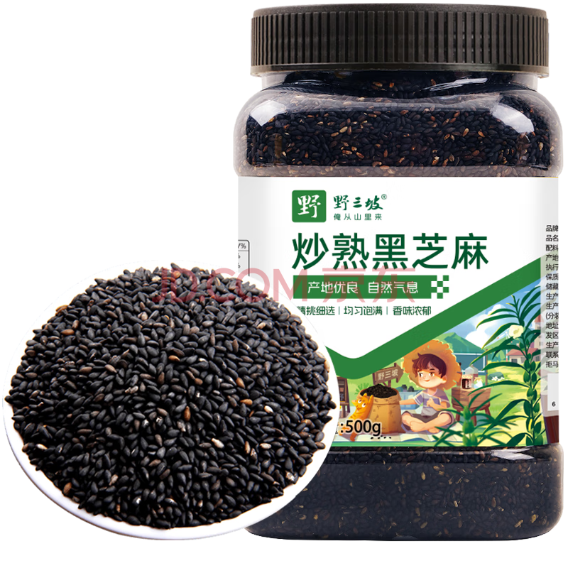 商品相册:野三坡炒熟黑芝麻 1斤/罐(低温炒制熟 早餐食品 即食干吃大瓶装杂粮)第
