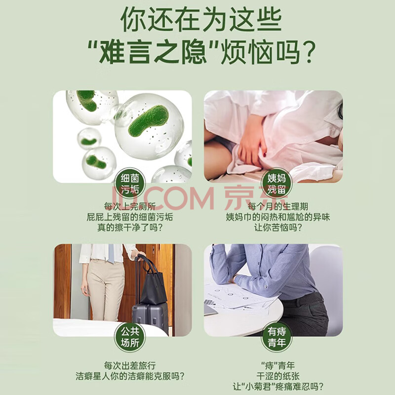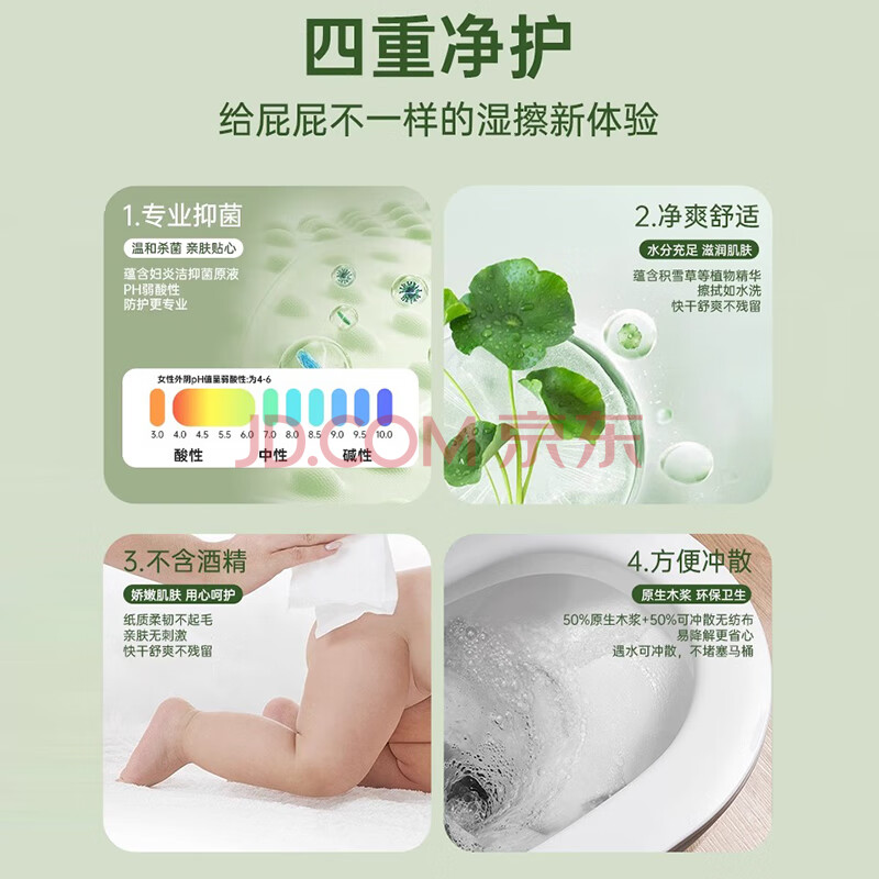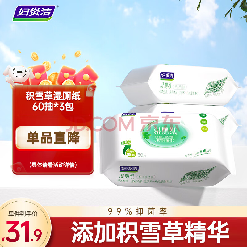 商品相册:妇炎洁湿厕纸积雪草60抽*3包擦除99.9%细菌湿擦免洗私处湿纸巾杀菌厕纸第