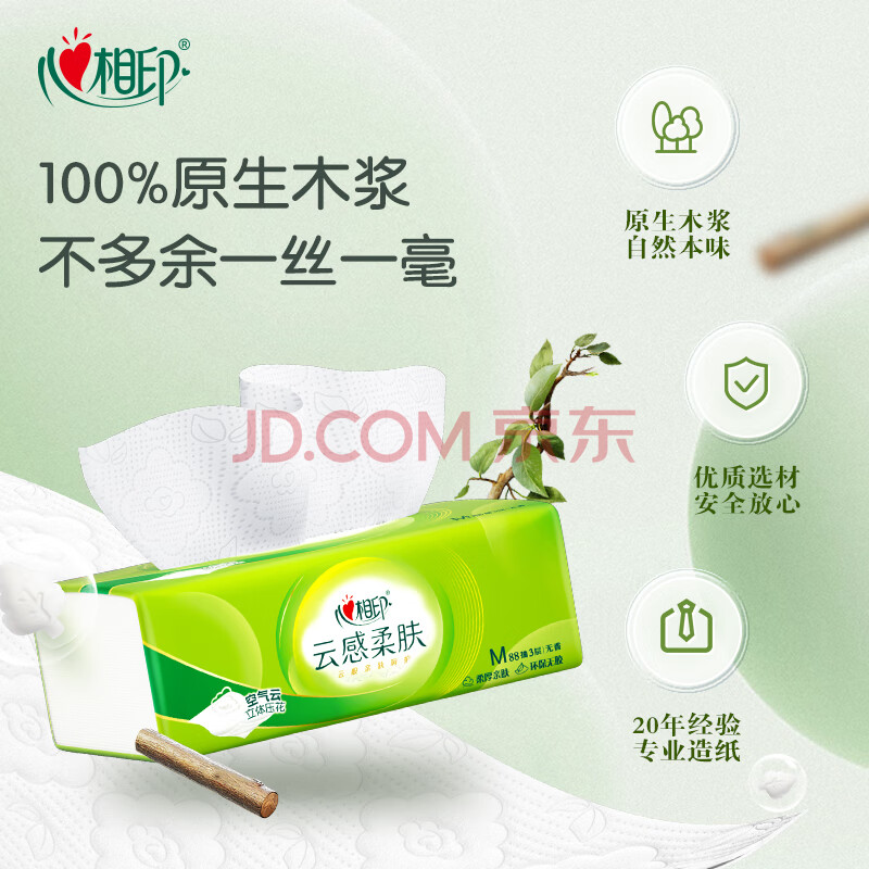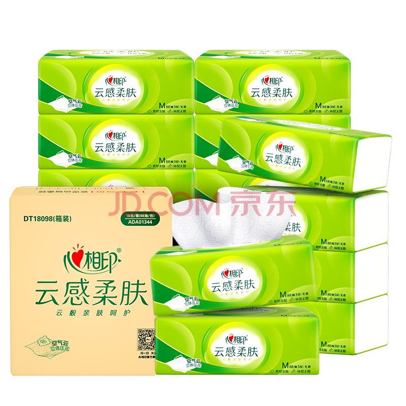 商品相册:心相印抽纸 纸巾 面巾纸 云感柔肤3层88抽*16包真M码 纸巾整箱 卫生纸第