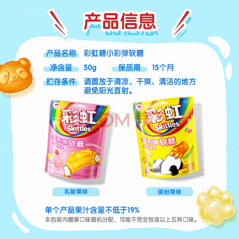 商品相册:彩虹(Skittles)彩虹糖小彩弹 软糖乳酸果味 26颗50g 儿童零食糖果 qq糖 水果糖第