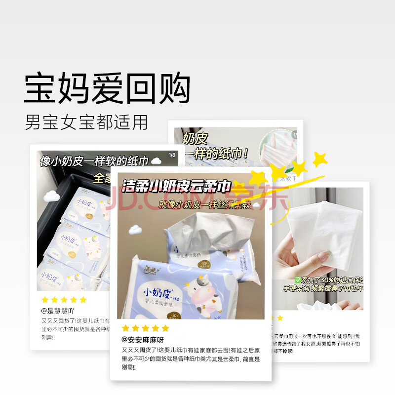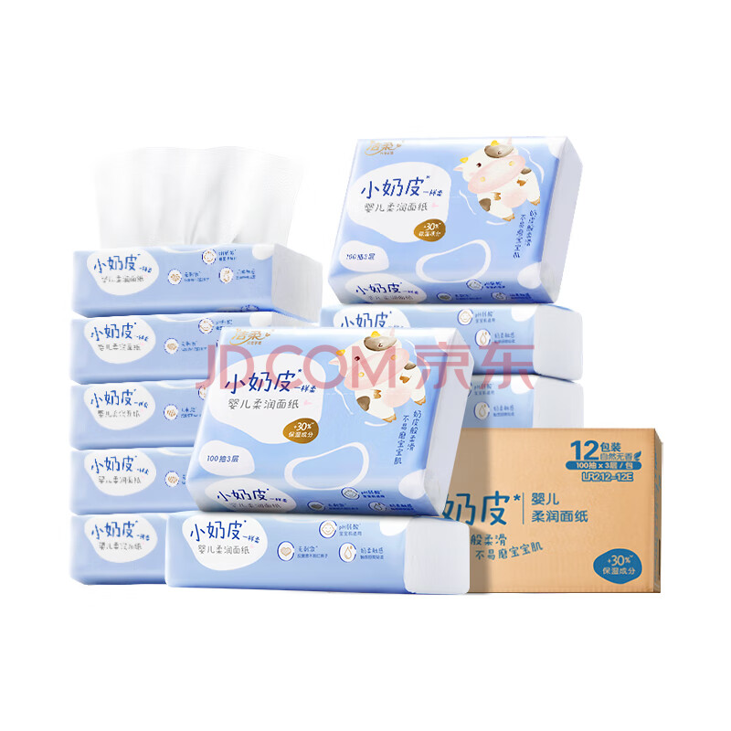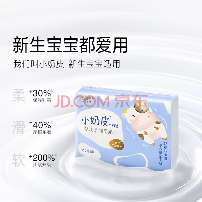 商品相册:洁柔乳霜纸 Lotion3层100抽*12包 小奶皮抽纸 云柔巾 婴儿保湿纸 整箱第