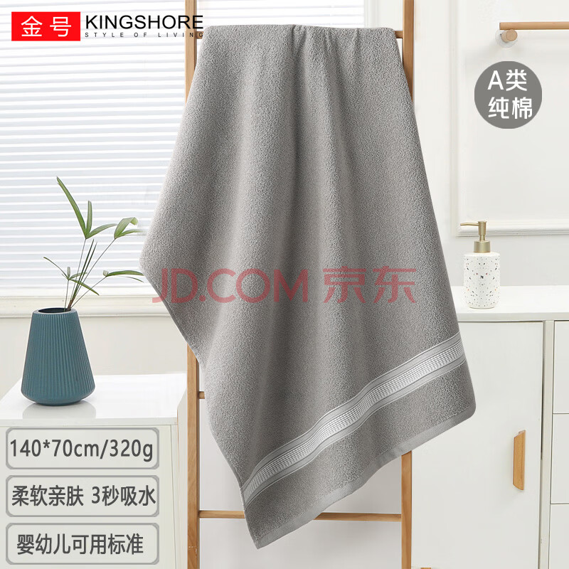 商品相册:金号新疆棉浴巾A类纯棉柔软吸水情侣洗澡巾 单条 140*72cm 320g浅灰色第
