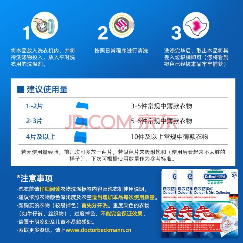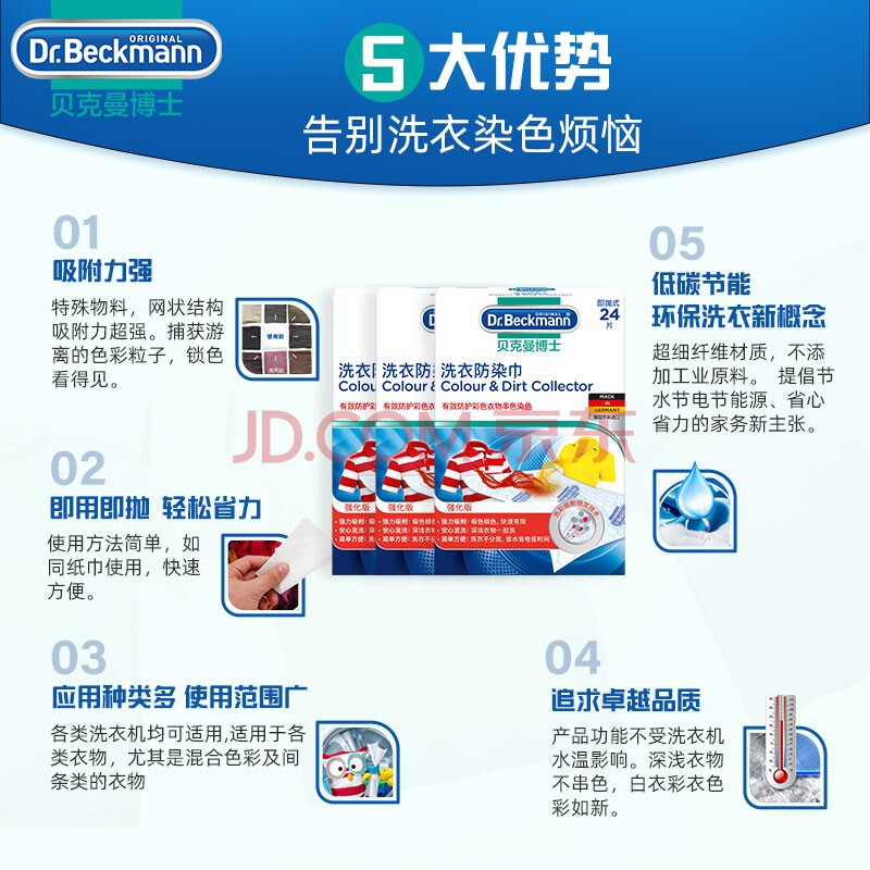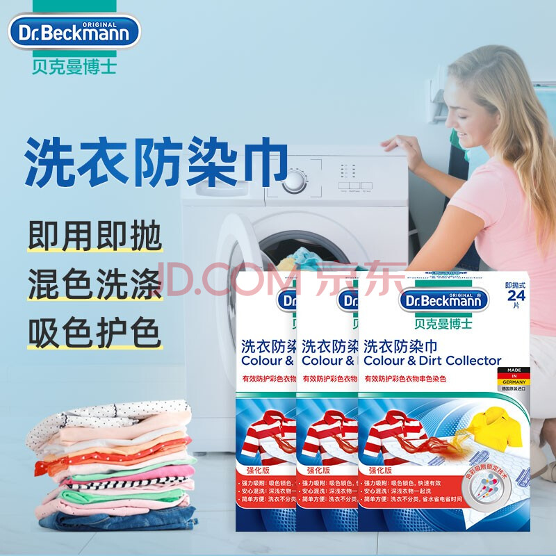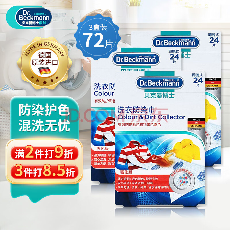 商品相册:贝克曼博士(Dr.Beckmann)洗衣防染巾72片 色母片抗染色洗衣片吸色片混洗防串色德国进口第1张/共7