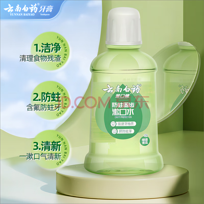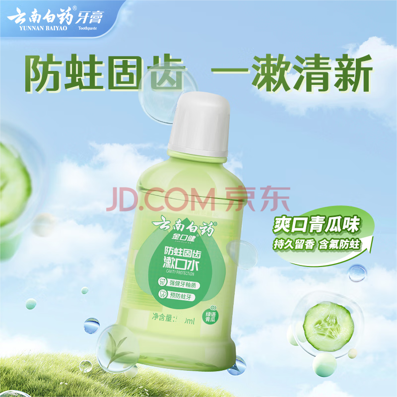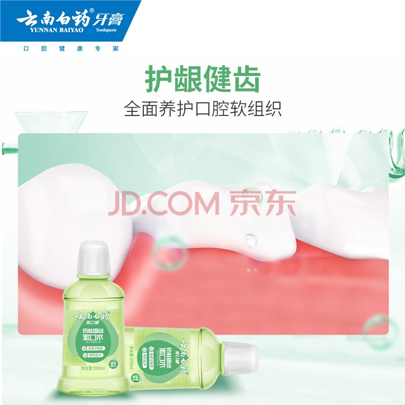 商品相册:云南白药【39.9元选5件】漱口水含氟防蛀固齿清新口气青瓜味便携装250ml第