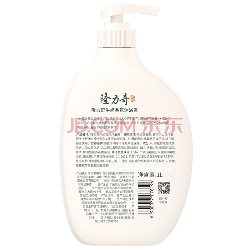 商品相册:隆力奇牛奶香氛沐浴露香体清洁肌肤沐浴乳男女士家庭大瓶装1L第