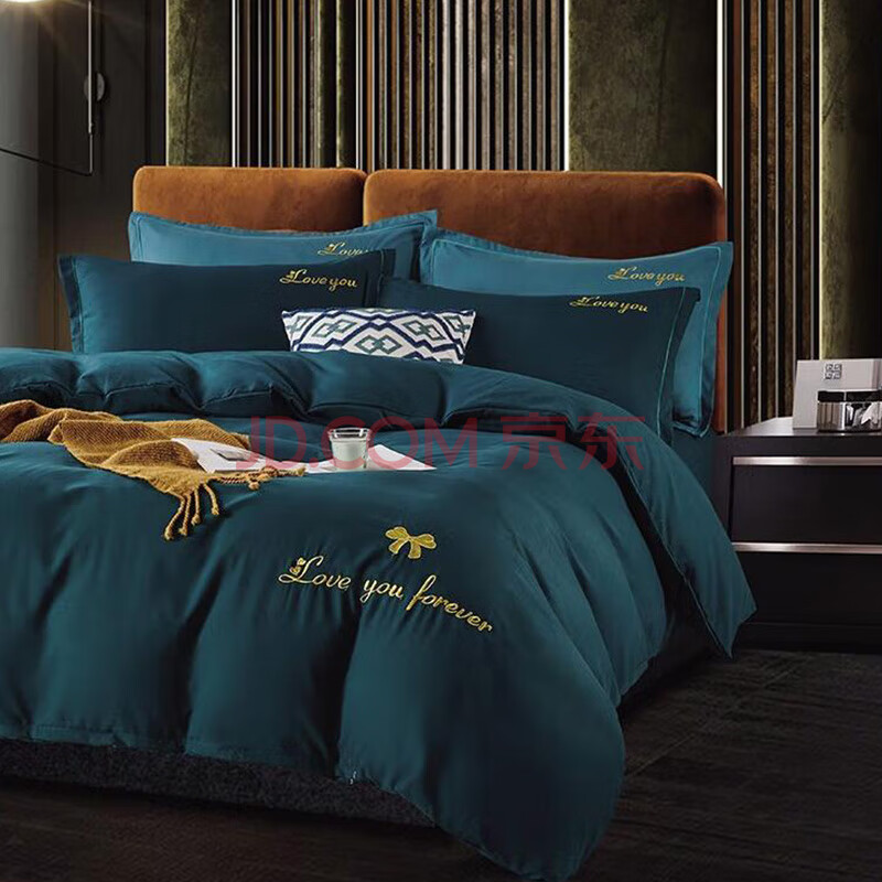 商品相册:芳恩(faunen) 纯色精绣四件套深墨绿 AN-JY643 (床单245x250cm 被套200x230cm 枕套50x80cm 常规包装)第