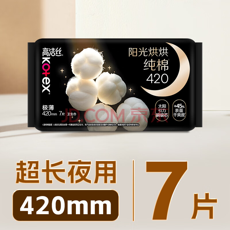 商品相册:高洁丝【纯棉NO.1】阳光烘烘卫生巾420mm7片超长夜用姨妈巾京东自营旗舰第