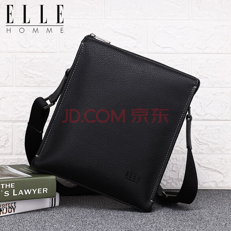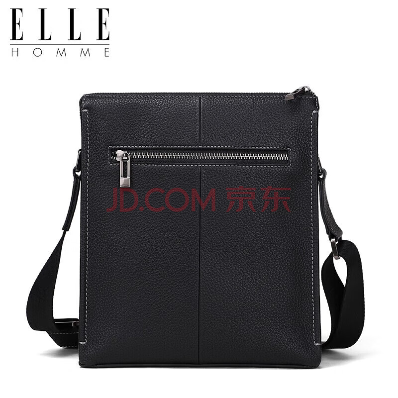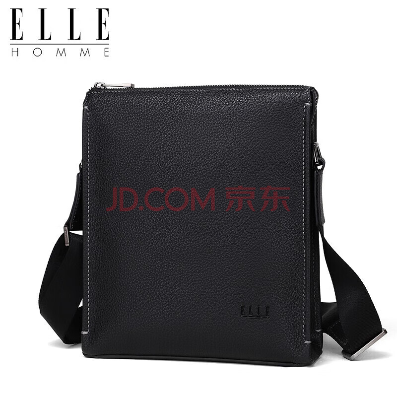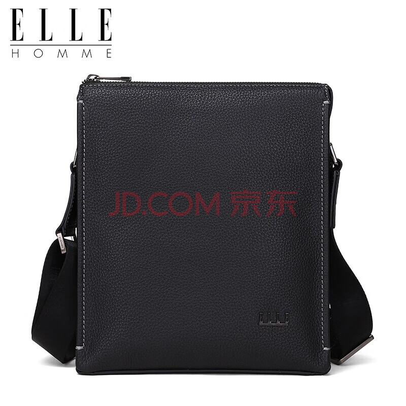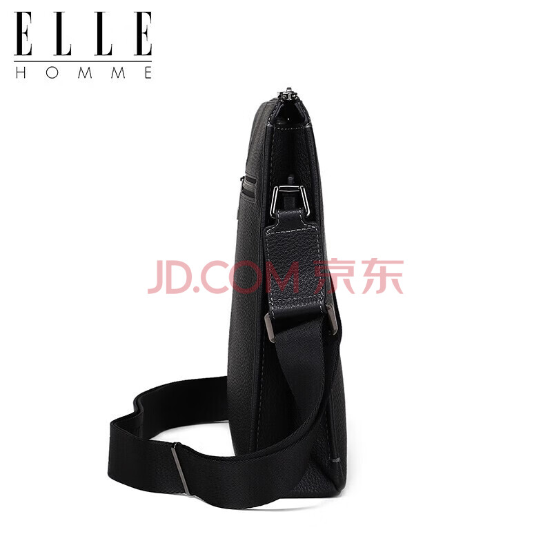 商品相册:ELLE HOMME 男士商务单肩包 时尚头层牛皮斜挎包大容量荔枝纹男包EA088204740黑色生日礼物送男友第