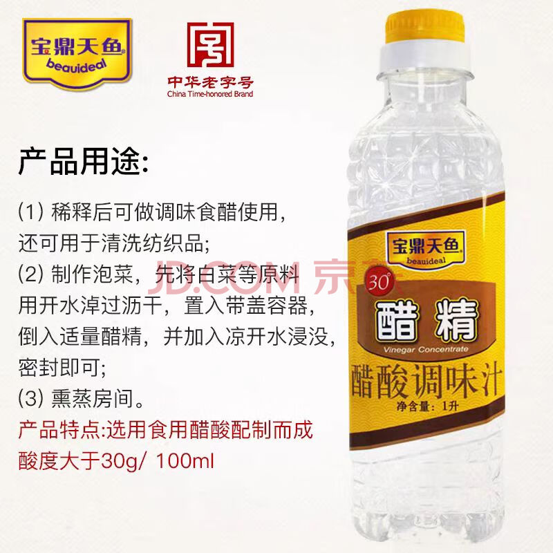 商品相册:宝鼎天鱼 30度醋精1L老字号调味汁泡脚醋洗衣固色除垢去异味第