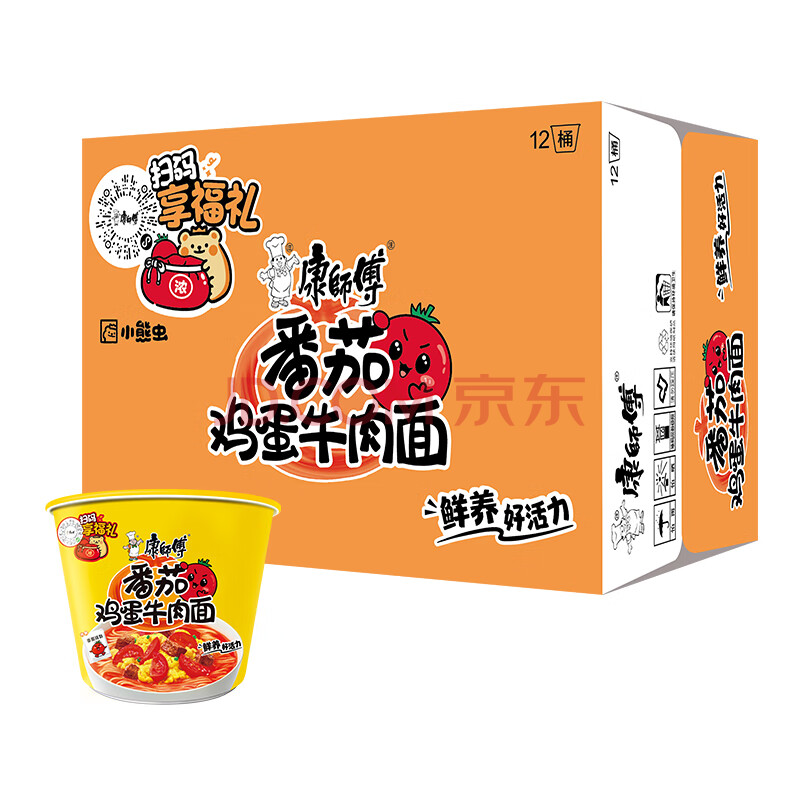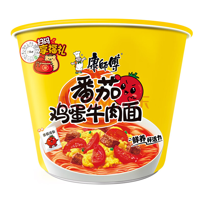 商品相册:康师傅 方便面 经典番茄鸡蛋牛肉桶面126g*12 泡面整箱速食 方便食品 第