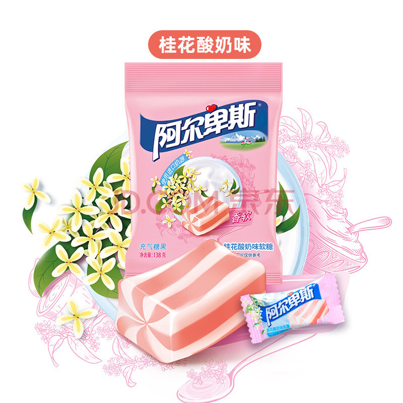 商品相册:阿尔卑斯 桂花酸奶味软糖138g 休闲儿童牛奶糖果散装零食婚庆开学第