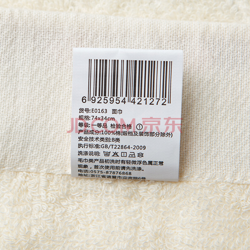 商品相册:洁丽雅(Grace)毛巾家纺 纯棉提花千鸟格洗脸巾加厚吸水浴巾三件套 米色第