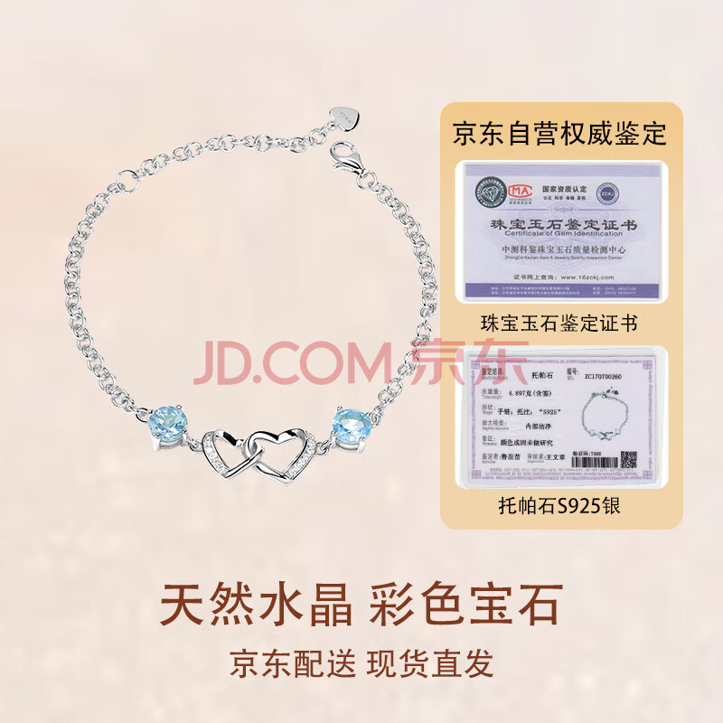 商品相册:JOLEE手链托帕石S925银彩色宝石爱心饰品简约轻奢送女士节日礼物第