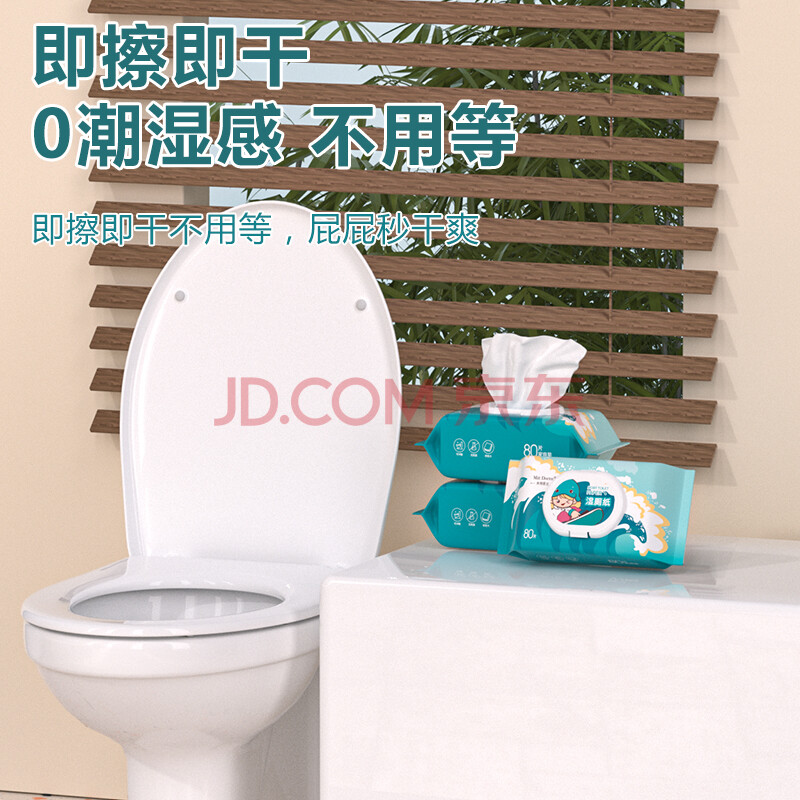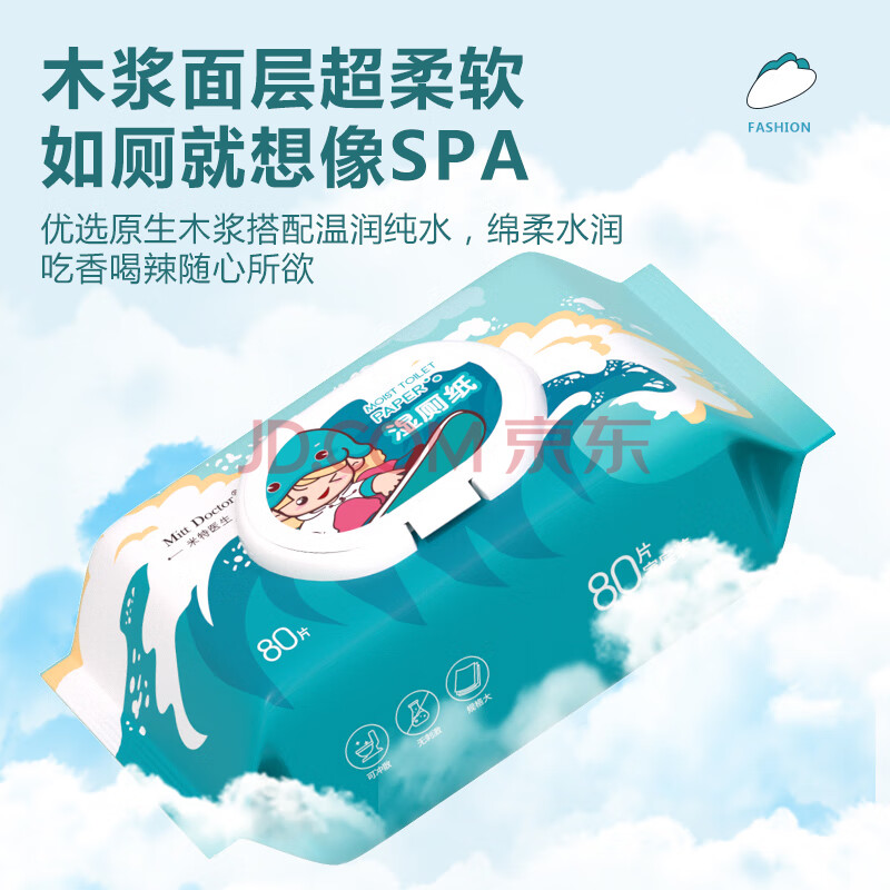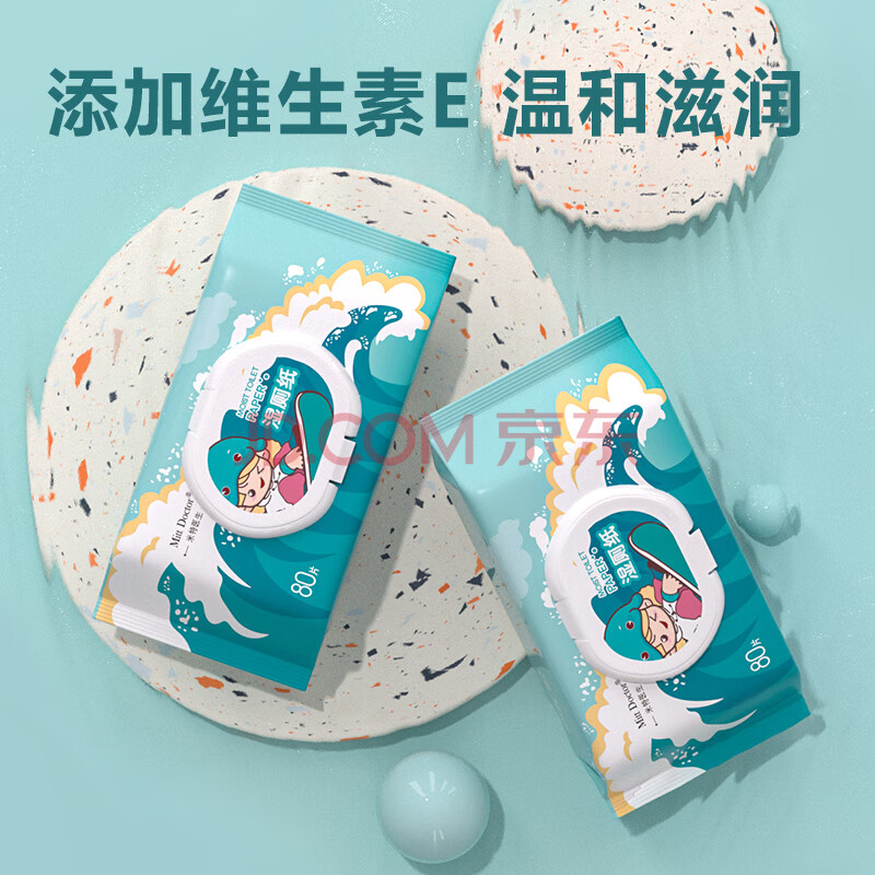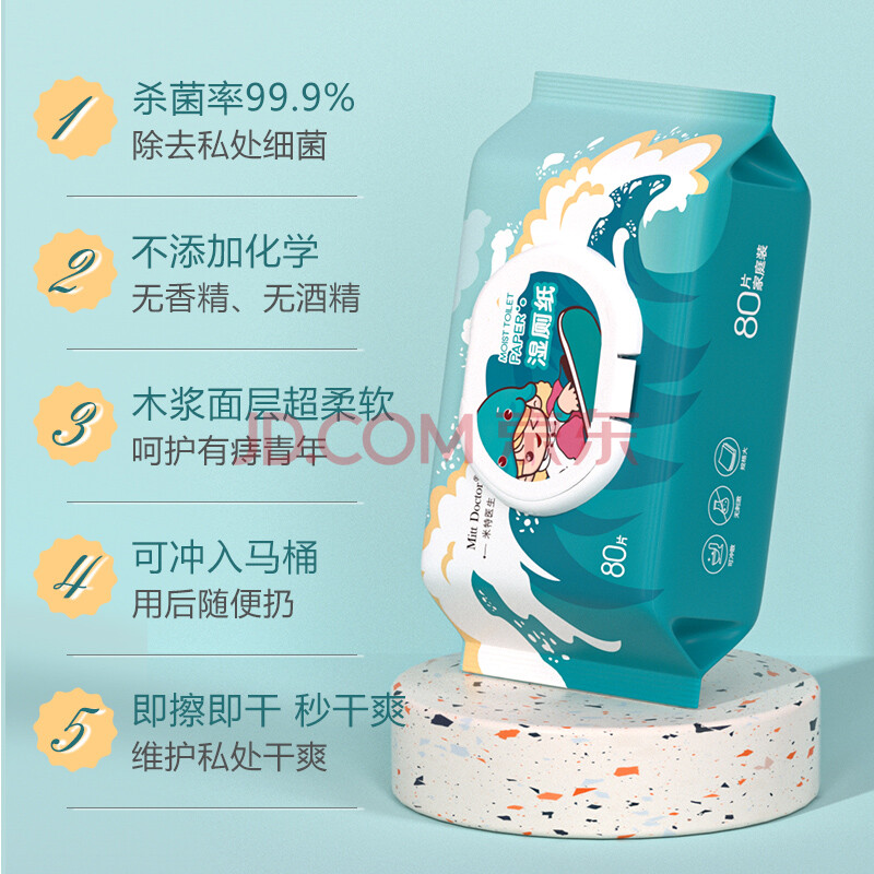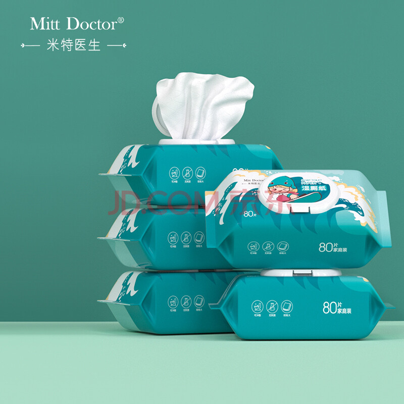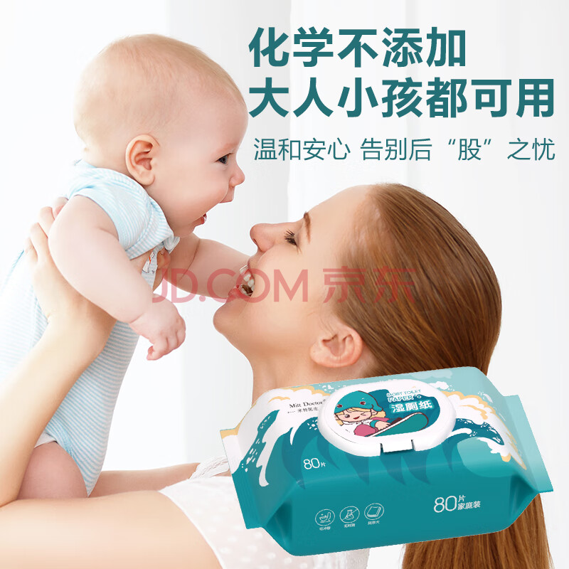 商品相册:米特医生湿厕纸冲浪款 80片*5包 添加维E湿纸巾 私处清洁湿巾 可冲马桶第