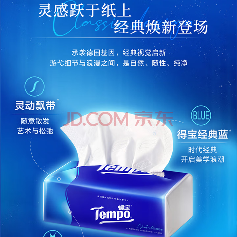 商品相册:得宝Tempo得宝抽纸4层90抽/包*18包/箱抽取式纸面巾,天然无香第