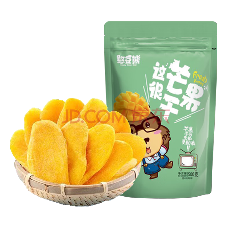 商品相册:憨豆熊芒果干500g/袋 水果干芒果片休闲办公室零食小吃蜜饯果干年货送礼第